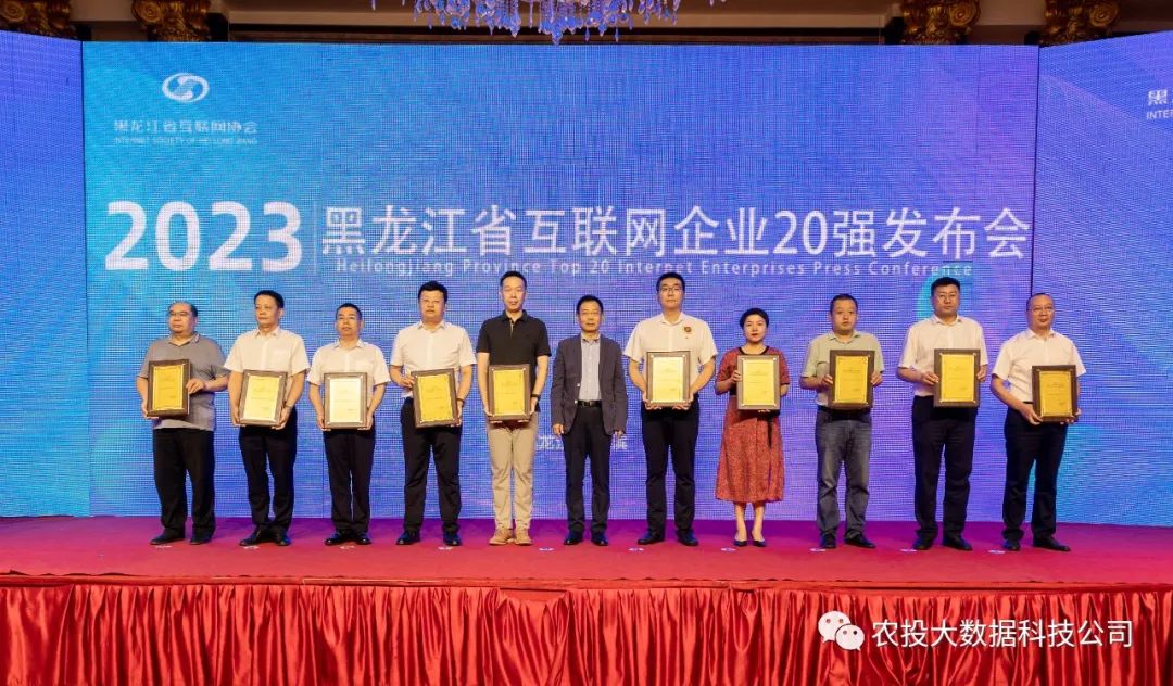 7月31日,2023年黑龙江省互联网企业20强发布会在哈尔滨新巴黎大酒店举行,会上颁布“2023年黑龙江省互联网企业20强及成长型企业10强”奖项,农投大数据公司在众多优秀互联网企业中脱颖而出,获“2023年黑龙江省互联网企业20强”殊荣,位列第六名!