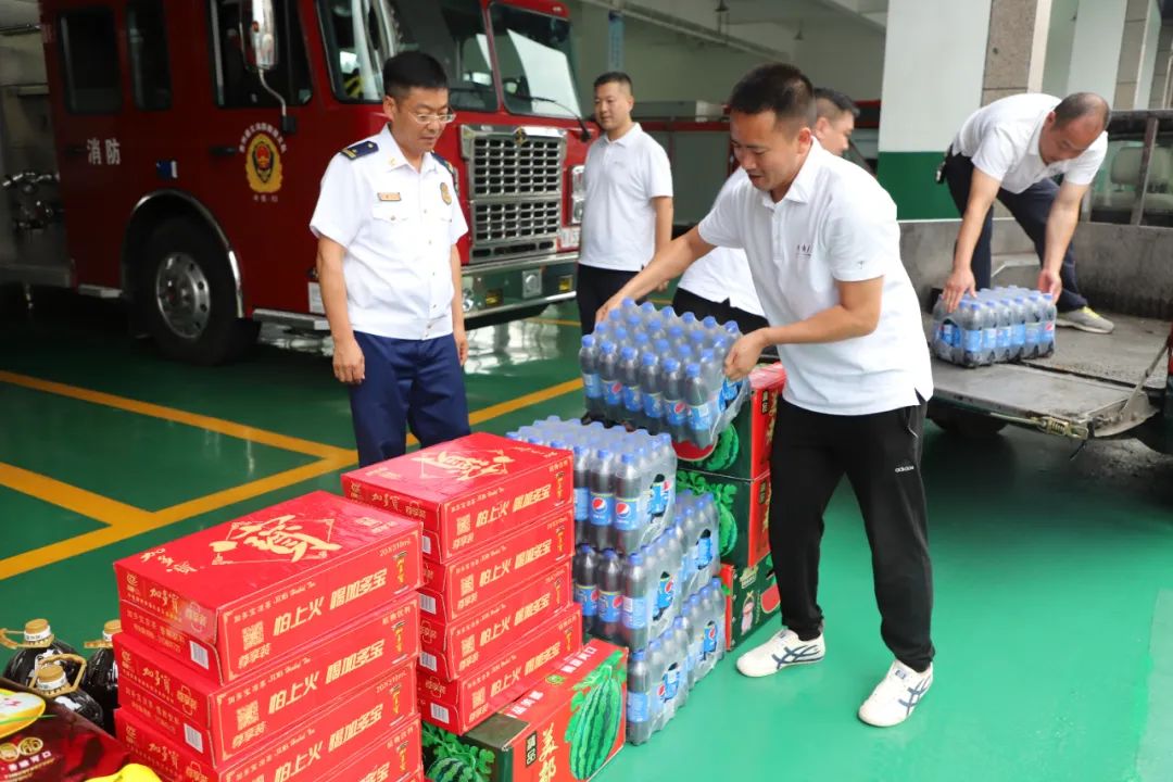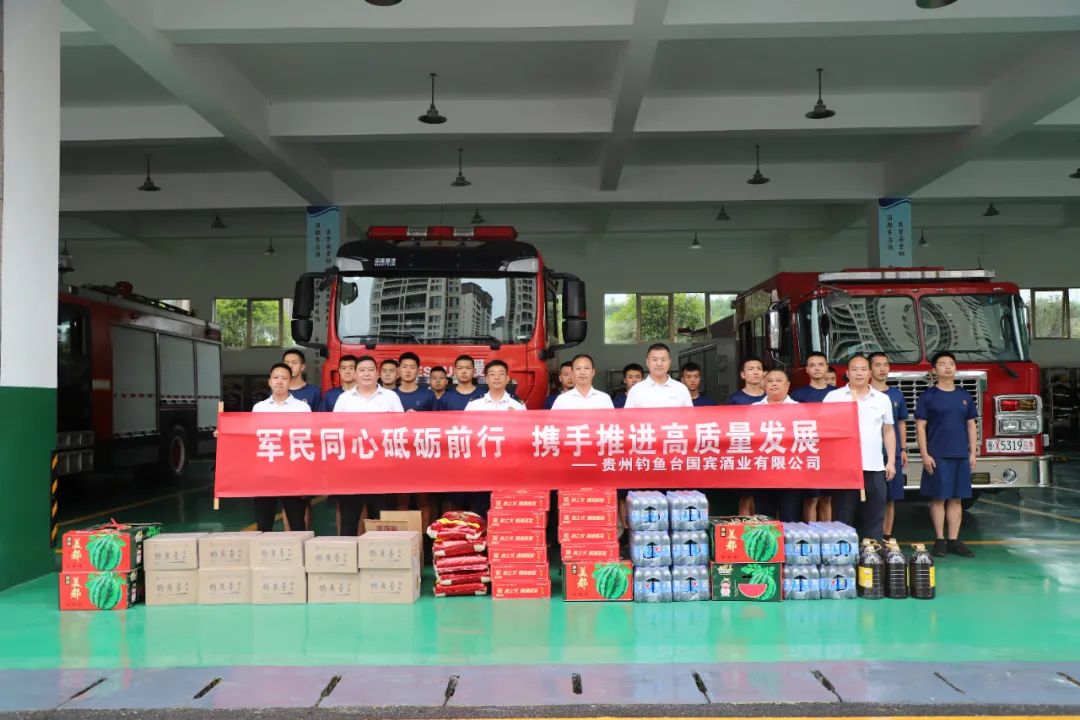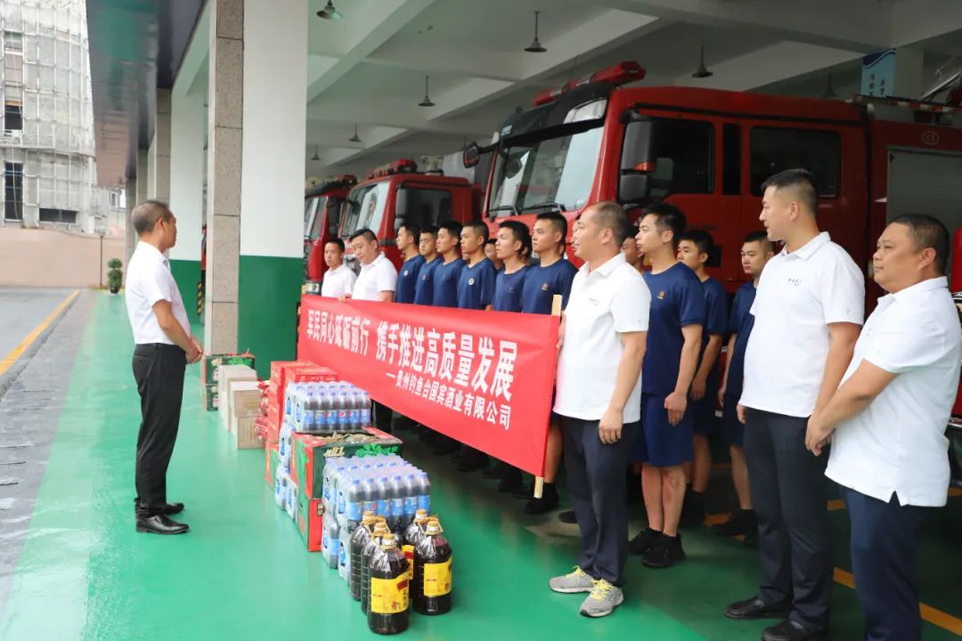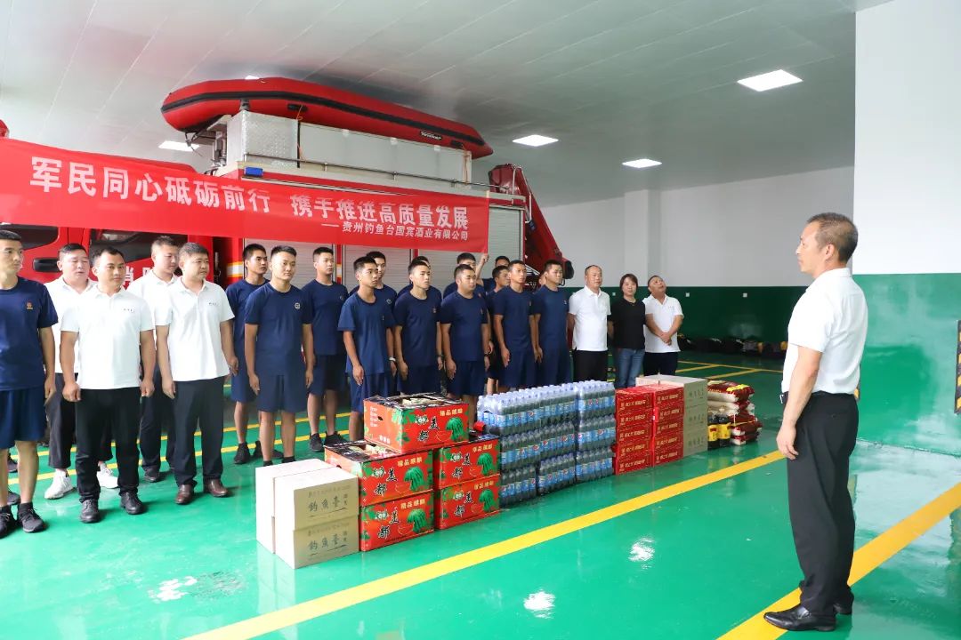 7月27日,钓鱼台酒业党支部统战委员、副总经理田伟带领钓鱼台酒业党支部委员、工会委员及安委会委员一行来到仁怀市消防大队,向全体消防官兵致以节日的问候和祝福,并送上慰问品。