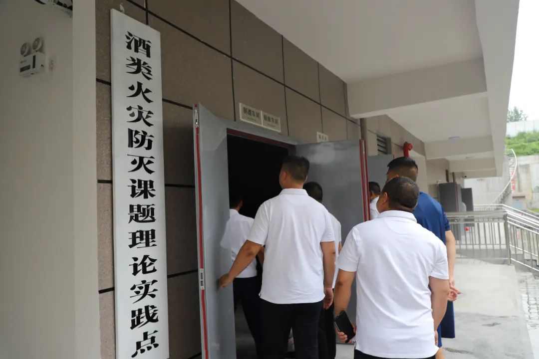 在消防大队教导员的带领下,慰问组一行依次参观了消防大队的酒类火灾防灭课题理论实践点、生活区、接处警室等。