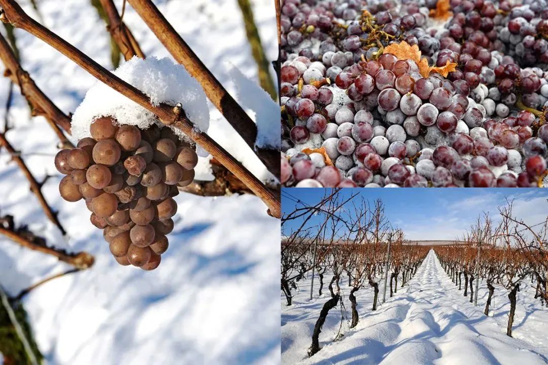 人们将健康的葡萄留在葡萄树上,直到冬季到来,葡萄中的水分结冰之后再进行采摘。这些葡萄在冷冻的状态下被压榨,因此葡萄中结冰的水分可以被除掉,只留下用于酿造甜葡萄酒的浓缩葡萄汁。
