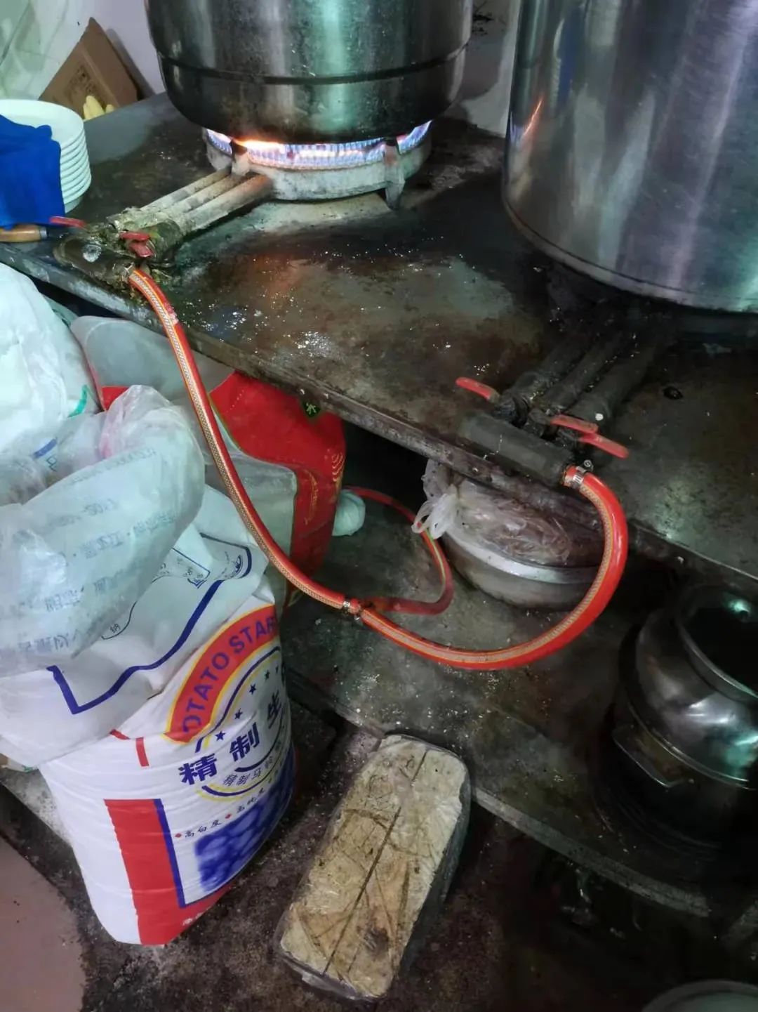 ● 如使用橡胶软管有些长5~6m并穿墙,且超期老化,还有使用普通塑料软管的,在软管两端固定有采用铁线捆扎的;● 有一店使用一只15kg液化石油气钢瓶,连接的橡胶软管不但接有多个三通,在软管中还开有多个接口,给3个灶具供气计有16个接头;●有一家单间面食加工店,在灶旁除使用2个15kg钢瓶外,还在加工台下藏有15kg钢瓶3只;●还存在灶具不用时只关灶前阀而不关闭钢瓶角阀,厨房内都无泄漏报警设施等。《城镇燃气设计规范》GB 50028-2006(2020修订版)《液化石油气供应工程设计规范》GB 51142-2015《输送液化石油气用橡胶软管和软管组件规范》ISO 11759-1999《燃气用不锈钢波纹软管》CJ/T 197-2010根据现行国家和行业规范标准的相关规定,使用瓶装液化石油气钢瓶的餐饮业作出如下规定:1)地下室或半地下室内不得设置瓶装液化石油气钢瓶和烹调用液化石油气燃烧设备或通风不良场所。当确需要设置在地下一层、半地下室时,应针对具体条件采取有效的安全措施,并进行专题技术论证;2)禁止使用气液两相钢瓶,备用燃气钢瓶应分开放置或用防火墙隔开;3)与燃气用具连接部位可采用液化石油气专用耐油橡胶软管或不锈钢波纹管。耐油橡胶软管与管道、灶具的连接应严密,连接处还应采用压紧螺帽(锁母)或管卡(喉箍) 固定;不锈钢波纹管应采用卡套式管件机械连接,卡套式管件应符合有关规范标准的规定;4)当耐油橡胶软管或不锈钢波纹管存在弯折、拉伸、龟裂、老化等现象时不得使用;5)耐油橡胶软管或不锈钢波纹管与灶具连接时,其长度应控制在1.2m~2m之间,最长不得超过2m,不得有接口,不得有三通。严禁使用管件将耐油橡胶软管或不锈钢波纹管分成两个或多个支管;6)耐油橡胶软管或不锈钢波纹管在任何情况下均不得穿墙、楼板、顶棚、门和窗;7)钢瓶与单台灶具连接时,可使用符合规范标准的耐油橡胶软管或不锈钢波纹管。如钢瓶需要与多台灶具连接时,应当将燃气燃烧器具固定后采用不锈钢波纹管与金属硬管连接;8)使用耐油橡胶软管或不锈钢波纹管应低于灶具面板3cm以上;9)液化石油气钢瓶应设置在室内,室温不得高于45℃,且不应低于0℃;10)为考虑发生事故时易于处理,在厨房间内应不使用50kg液化石油气钢瓶。在餐饮业营业厅、库房、卧室内严禁放置液化石油气钢瓶;11)要建立健全并落实相应的消防安全管理制度,应加大对厨房员工定期或不定期地进行消防安全教育培训,树立安全用气意识,掌握燃气安全使用知识,严格按照安全用气规则使用燃气。检查橡胶软管使用年限:技术要求1~2年必须更换,对于餐饮业宜1年更换。如在使用期内检查发现橡胶软管变硬、老化、破损、龟裂等情况时应及时更换。对使用橡胶软管的餐饮户应推荐不锈钢波纹管,不锈钢波纹管使用年限为8年,餐饮业宜5年更换。二、液化石油气钢瓶专用房间设置