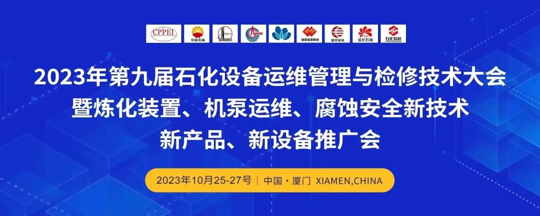 中国石油和石化工程研究会联合各方决定2023年10月25-27号福建厦门继续联合召开“2023第九届石化设备运维管理与检修技术大会暨炼化装置、机泵运维、腐蚀安全新技术、新产品、新设备推广会”。