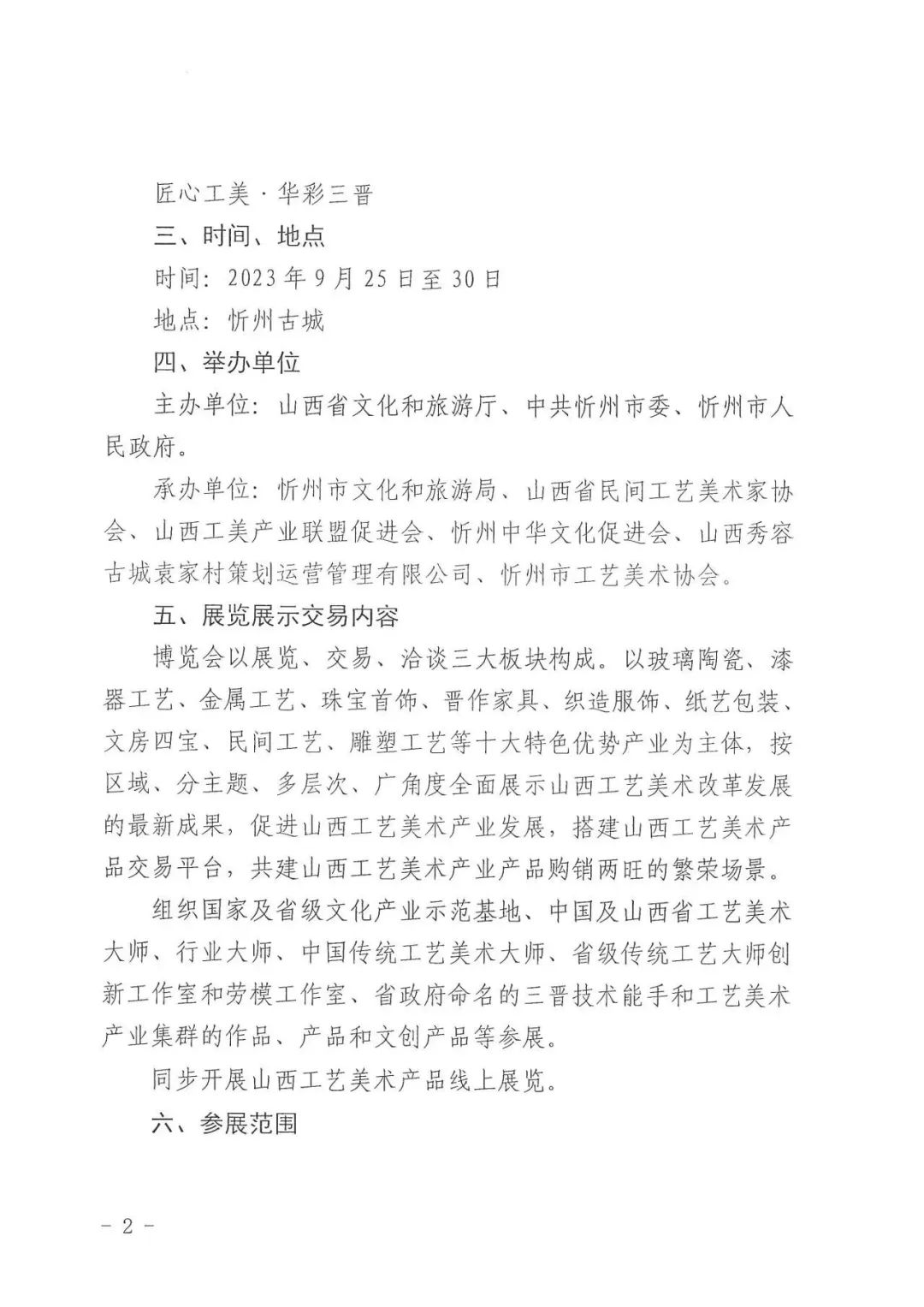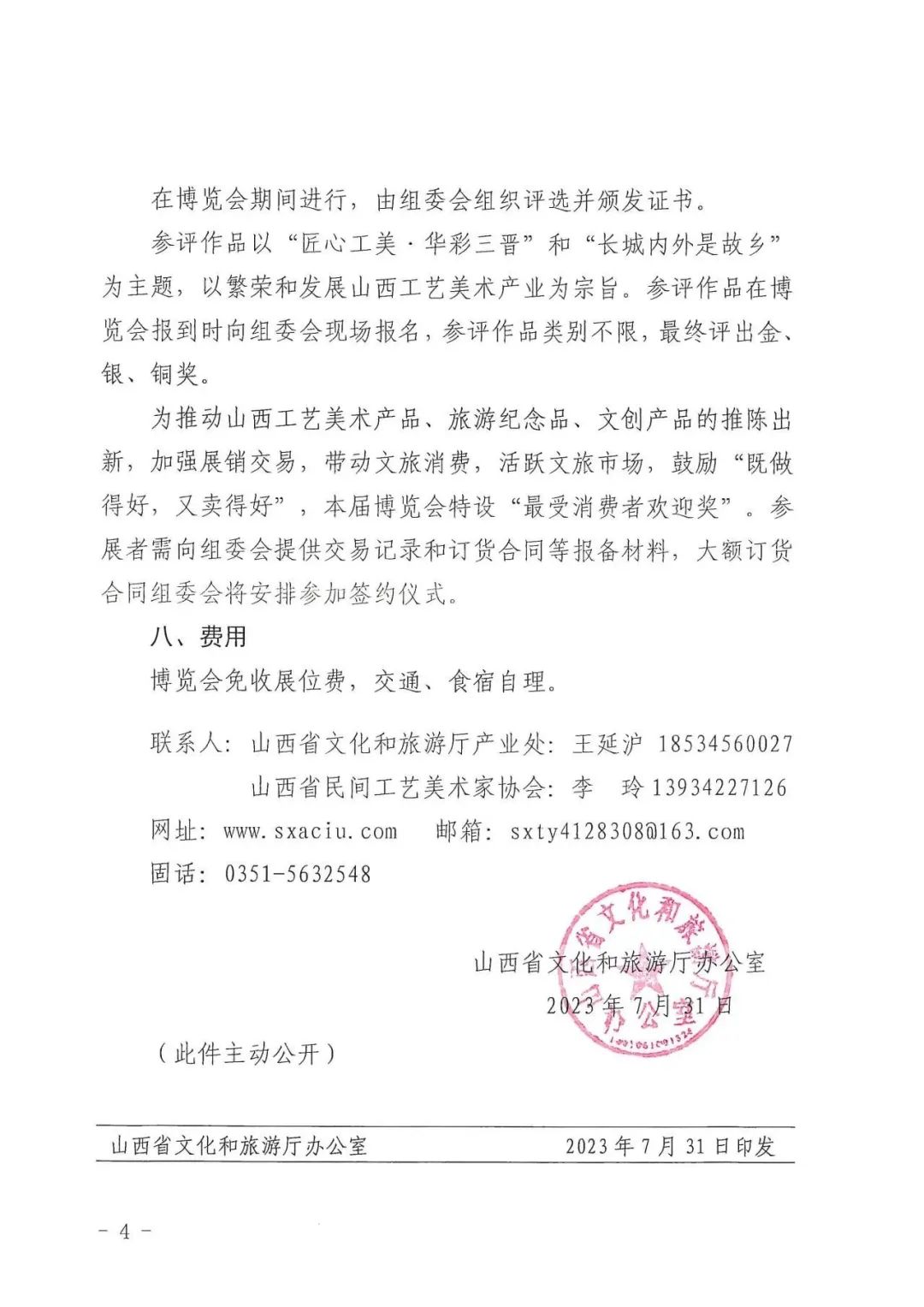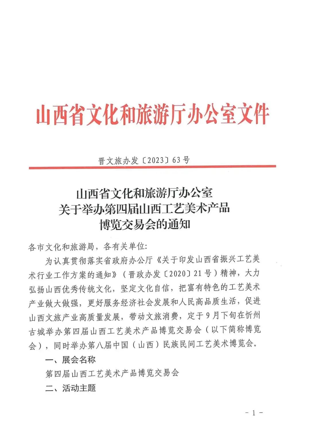 关于举办第四届山西工艺美术产品博览交易会的通知