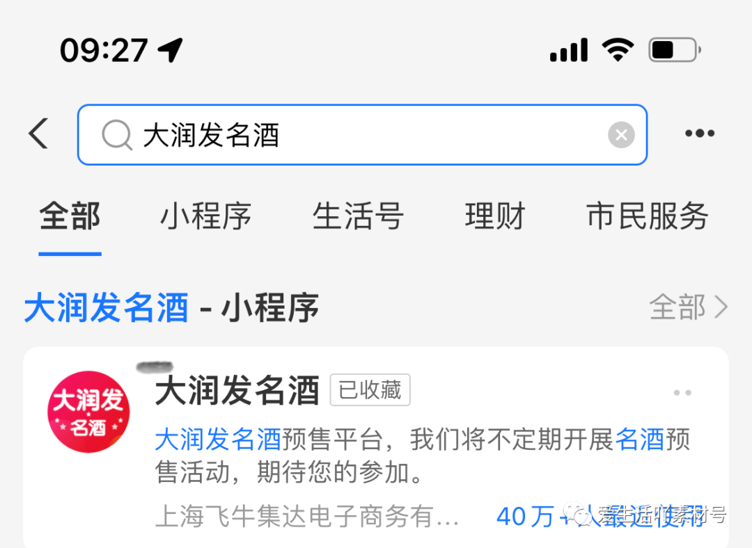 支付宝搜索【大润发名酒】