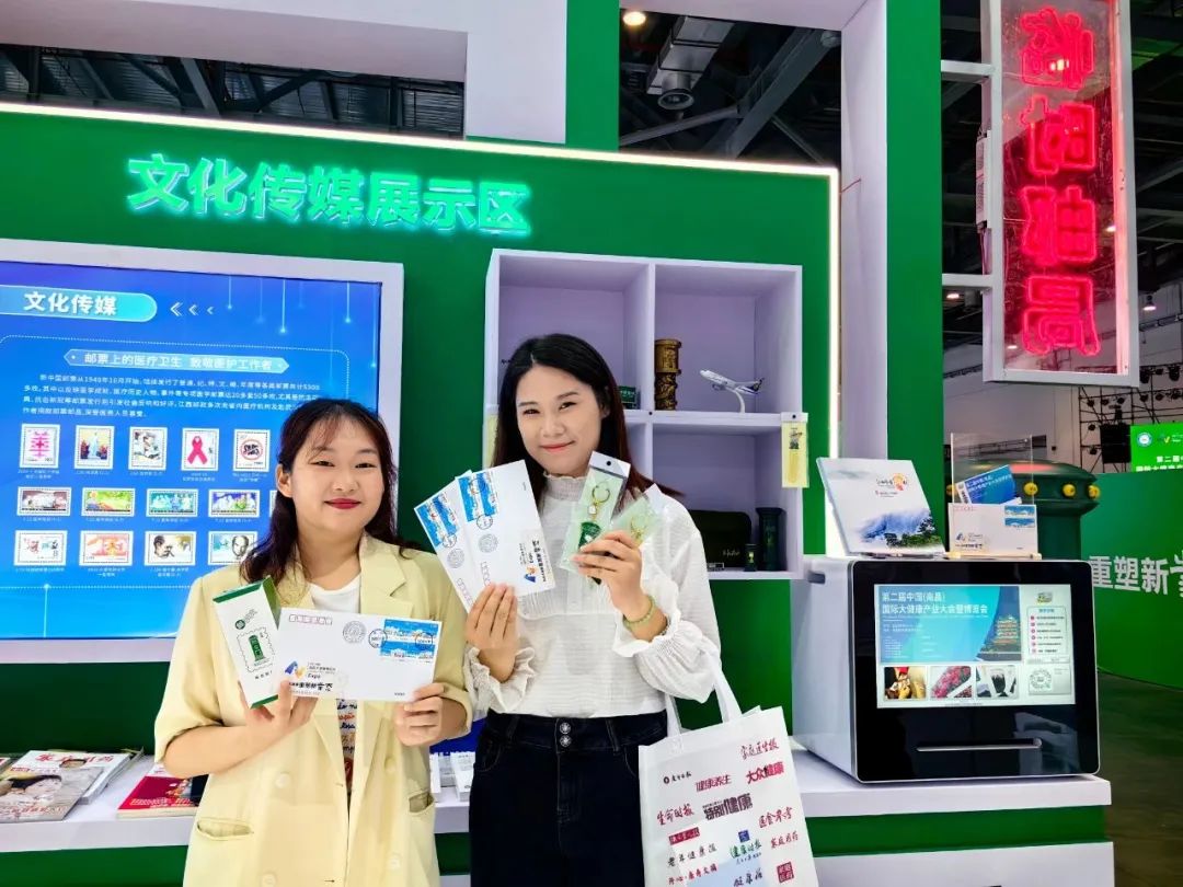 邮政展区精心准备了琳琅满目的文创产品,同时启用和发行了江西邮政为健博会专门制作的特定纪念封和纪念邮戳,颇受邮迷朋友的欢迎。展区还设立了临时邮局,为参展企业和客户提供寄递服务。