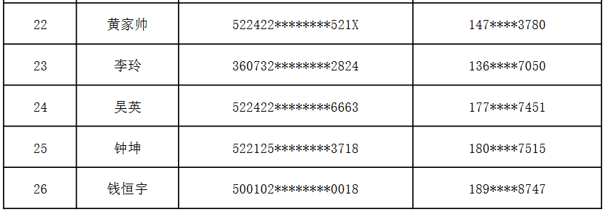 贵阳银行“第十一届贵州省人才博览会”招聘工作已结束,根据公平、公正、公开的原则,综合考虑考生笔试、面试及能力素质测评成绩,经党委会审议通过,共拟录用26人,现将拟录用人员名单进行公布。后续我行将对拟录用人员开展背调、政审、体检、入职手续办理等工作,具体时间另行通知,请保持手机通讯畅通。感谢广大考生对贵阳银行招聘的关心、支持与参与,未录取的人员希望继续关注贵阳银行其它招聘活动。