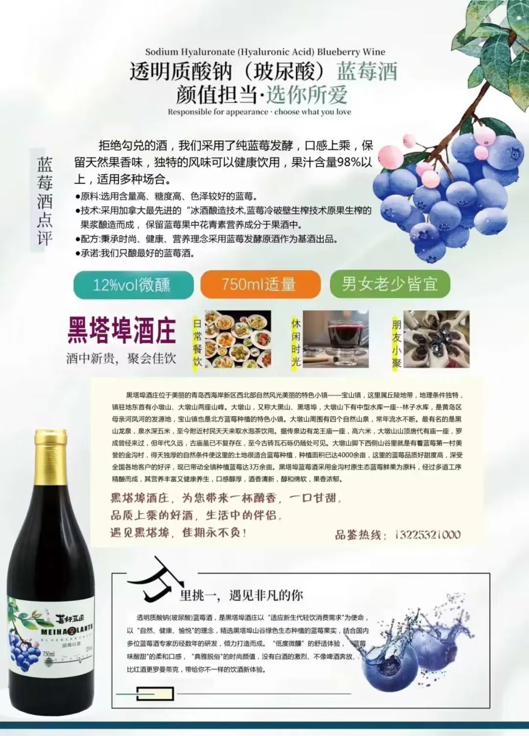 黑塔埠山谷位于青岛西海岸新区蓝莓小镇宝山镇,山清水秀,人杰地灵,再加上精心管理的有机蓝莓的优势,精心酿制。采用有机蓝莓为原料,使用国际先进的酿酒技术和独特的传统工艺精酿而成,外观经过专业设计,极具收藏和饮用价值。绝对让您爱不释手~