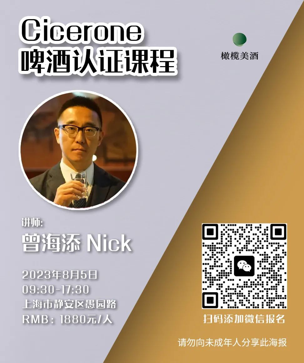 8月5日 继续橄榄美酒将继续联合知名 Cicerone 认证讲师Nick曾海添推出新一期Cicerone 认证课程。助你拿下国际认可的啤酒证书!