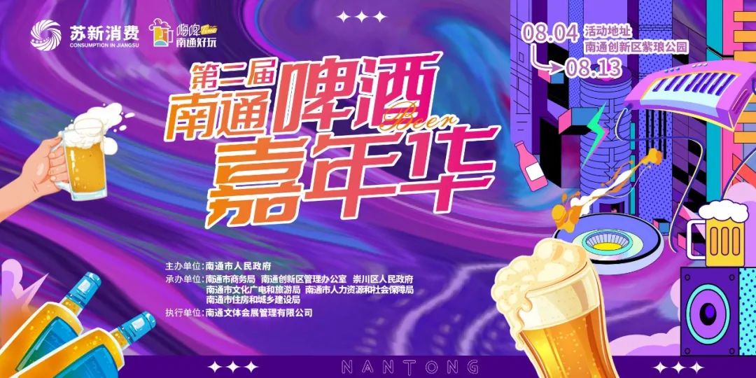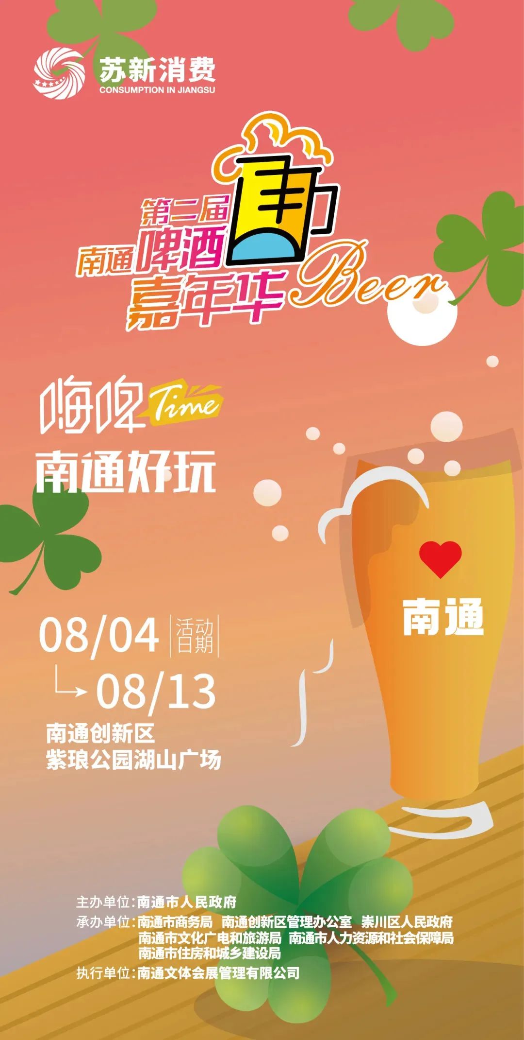 8月4日至8月13日,每天18:00-22:00 ,南通创新区紫琅公园(湖山广场),第二届南通啤酒嘉年华,就等你来!推荐市民朋友们乘坐公共交通出行哦: