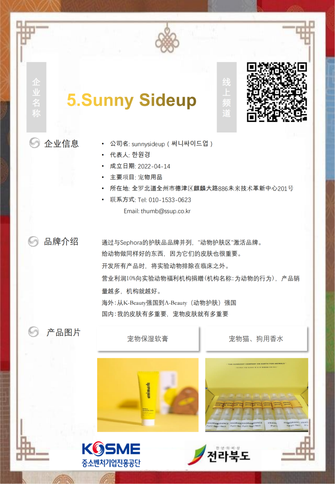 为进一步加强我省与韩国工商界的交流对接,为双方开展经贸领域务实合作搭建平台,韩国国际商务中心重庆代表处拟于8月22日在成都举办“中国·四川—韩国企业洽谈会”活动。届时将组织13家全罗北道韩国优秀企业到场,按意愿匹配企业进行现场1对1洽谈,欢迎感兴趣的企业前来对接、洽谈。本次活动免费参与,并提供免费翻译服务,请有意参会企业点击下方阅读原文下载报名表。报名截止时间:2023年8月10日14时。