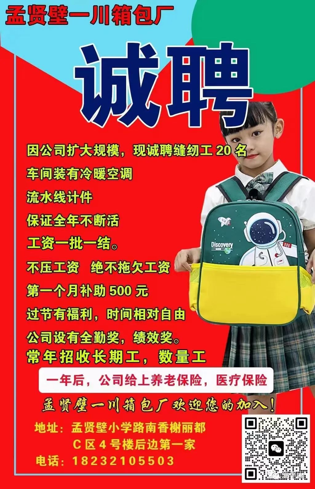 ▲长期招聘熟练缝纫工、学徒工及店员,缝纫工主要工作:加工箱包,计件工资加补助奖金,工作简单,时间自由灵活。长期手工活外放。