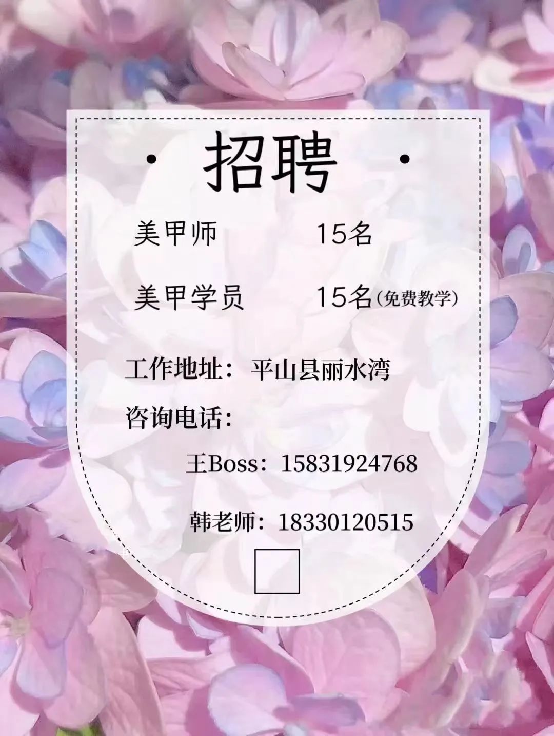联系电话:18034518678▲招聘美容师:保底6000-10000一个月,提成最高50%,手工最高50元/次,介绍一个面试成功奖励现金5000元!地址:平山县 电话:15612158272