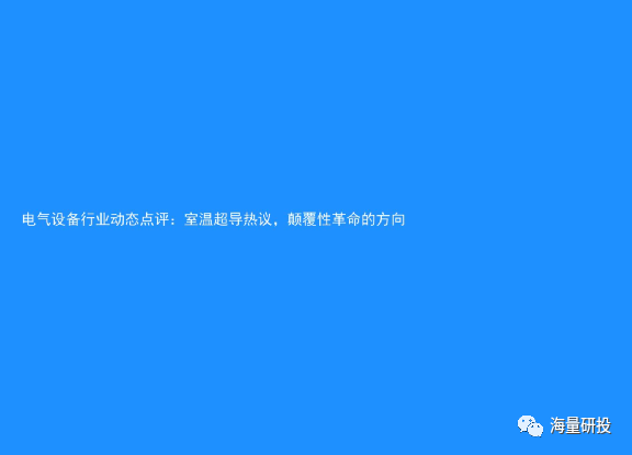 今天为大家推荐一篇《电气设备行业动态点评:室温超导热议,颠覆性革命的方向》
