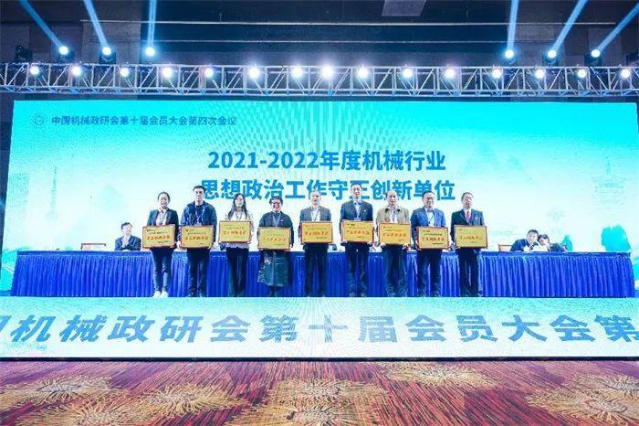 中国机械政研会第十届会员大会第四次会议上,发布了全国机械行业政治思想文化建设先锋榜、贡献榜、成果榜2021-2022年度上榜单位和项目名单。大会授予我院“2021-2022年度机械行业思想政治工作守正创新单位”和“2021-2022年度全国机械行业文化建设创新单位”荣誉称号。学院申报的《赓续红色血脉,构建“五位一体” 思政育人平台》和《持工匠之钥,淬机电之神,融文化之魂——工匠精神融入校园文化建设的实践探索》荣获机械行业思想政治工作优秀案例。
