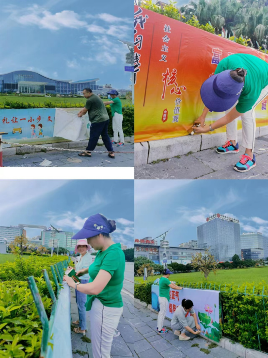 建设清廉国企是推动经济高质量发展的关键,8月2日公司徐翔书记带领广告部全体员工对广场绿化带多处宣传栏进行更换,在“弘扬浩然正气 倡导廉洁之风”的标语前,徐翔书记表示坚持以习近平新时代中国特色社会主义思想为指导,学习贯彻二十大精神,以中央、自治区、桂林市纪委会议精神,始终坚持:“第一议题”制度,完成清廉国企建设各项任务。广告部作为公司业务窗口,要坚持公平公正谈业务,对客户一视平等,提高服务质量,树立不能腐、不敢腐、不想腐的“三不”意识。广告部要切实做好会展中心各方面宣传报道工作,特别要完成清廉国企的宣传报道任务,宣传“清廉会展是责任,会展清廉是光荣”的企业廉政文化,营造公平公正,清正廉明的会展企业形象。