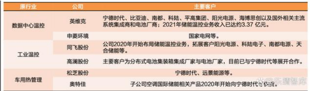 目前国内储能温控主要由数据中心温控企业、工业冷却设备企业、以及汽车温控企业布局。