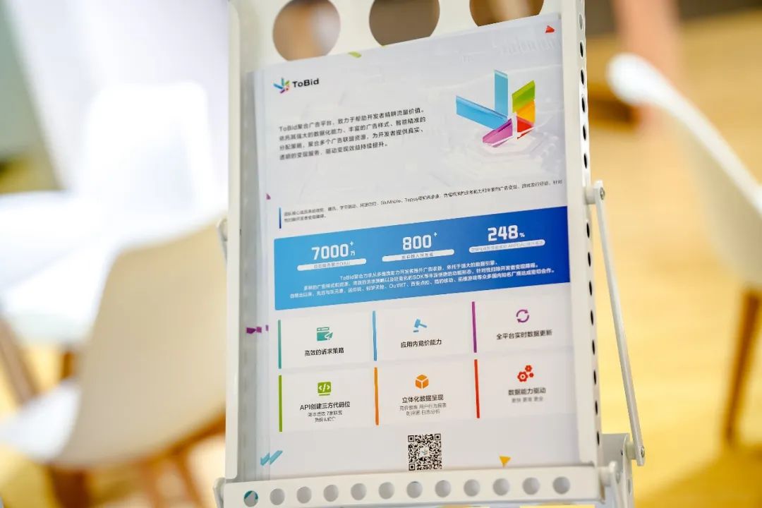 展台公共区域、会议室交流区,一度满员,可以看出大家对于目前流量广告变现环境的高度关注。ToBid自然不会辜负每一位来访者,产品、运营、商务伙伴齐上阵,针对开发者的问题交流解惑!
