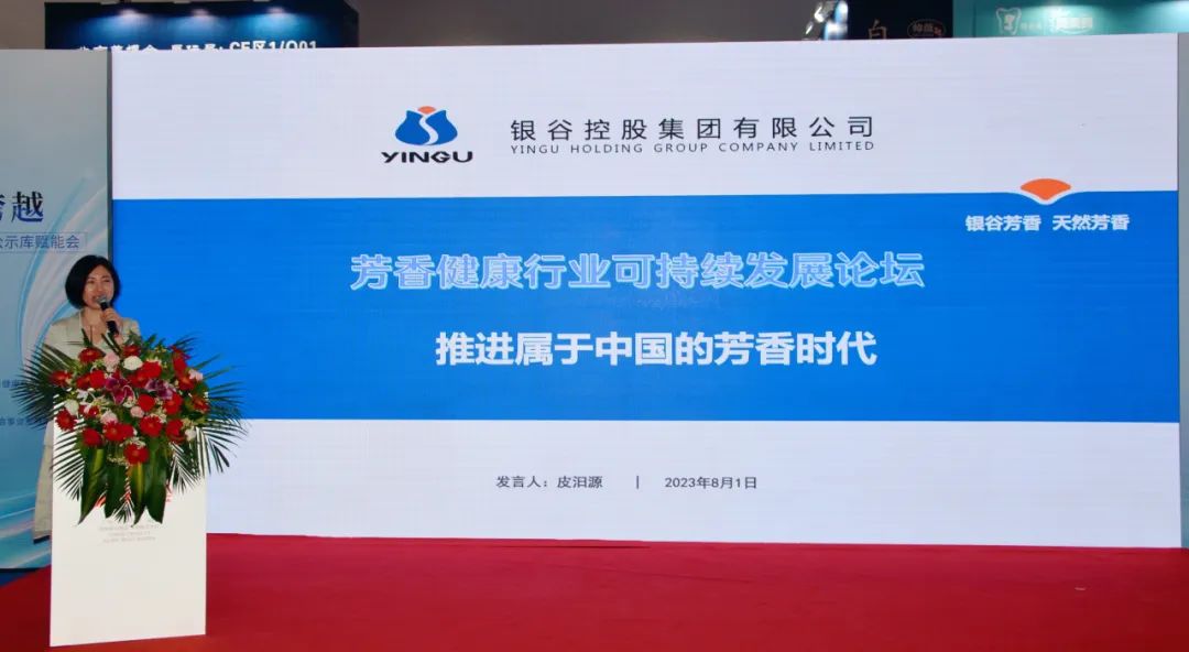 近日,银谷芳香总裁皮汨源女士受邀参加于2023年7月28日至8月2日在北京国家会展中心举办的第28届北京国际美博会,并在8月1日开展的芳香健康行业可持续发展论坛中发表演讲。