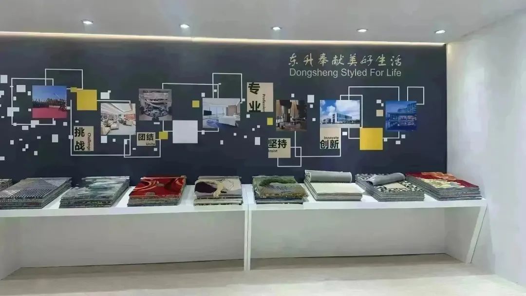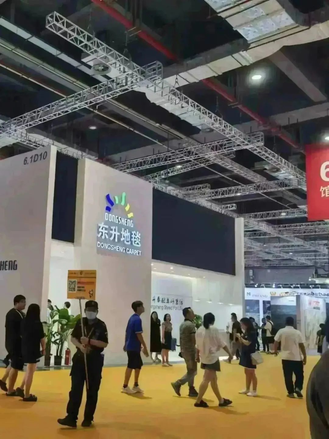本届展会东升地毯展位面积近300平米,全面展示了企业规模、技术、产品、工艺,精心布置了商用地毯和家居地毯展区,全面展示了阿克明、威尔顿、印花以及簇绒等全系产品,匠心设计的展台与展品得到客户同行的一致好评。