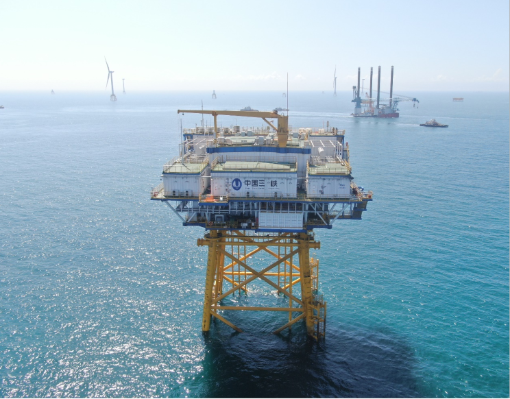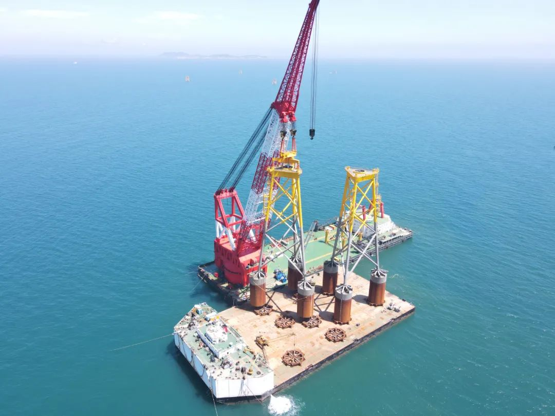 长乐外海海上风电场已于2021年底全容量并网,项目建设创造了“1天完成3个四桩导管架基础安装”、“36小时完成1台8MW风机安装”、“3天完成5个吸力式导管架基础安装”、“单月完成17台风机吊装”的“长乐速度”。其成功实施,实现了我国深远海风电零的突破,为国家“30·60”双碳目标增添了强大动力。