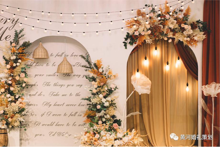 选用奶白色,浅香槟、奶茶色为婚礼的主色调。何其有幸,与你相遇,这就是新娘想要的婚礼。