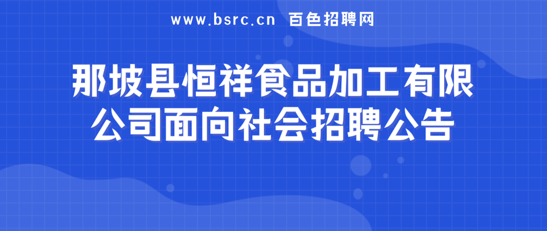那坡县恒祥食品加工有限公司面向社会招聘公告
