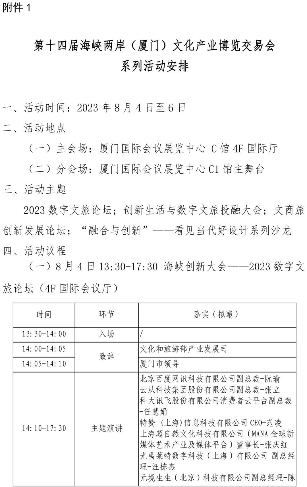第十四届海峡两岸(厦门)文化产业博览交易会系列活动安排