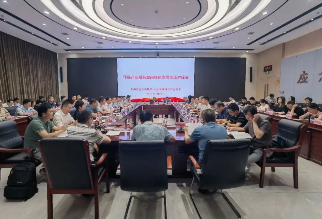 7月29日,湖南省生态环境厅与中国环境保护产业协会在第四届湖南国际绿色发展博览会期间联合举办“环保产业服务湖南绿色发展交流对接会”。中国环境保护产业协会党委书记、会长郭承站亲率38家生态环保产业重点企业走进湖南,与湖南省生态环境厅一级巡视员张在峰及12个市州生态环境局有关负责同志共商生态环保产业服务湖南生态文明建设、促进湖南经济社会绿色低碳转型,共同推进湖南生态环保产业高质量发展。