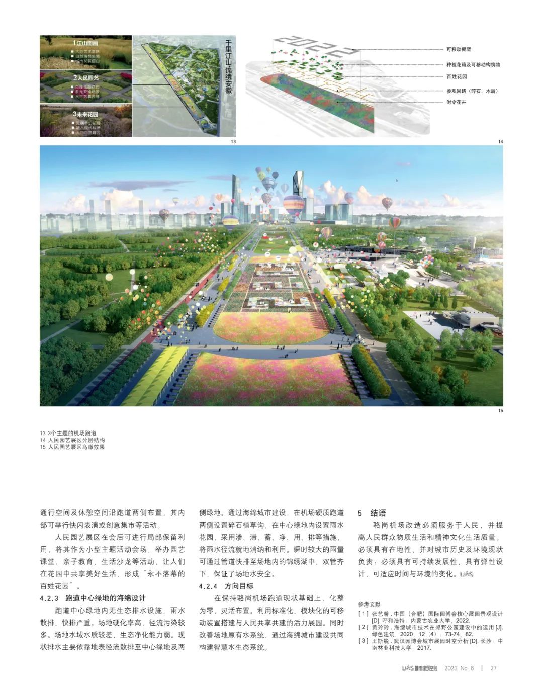 以合肥骆岗机场跑道为例,从打造以城际展廊和以人民为主题的百姓花园 2 个方向出发,最终采用“保留生态绿荷,塑造大地景观”的设计方案,为废弃机场跑道创造无限可能。