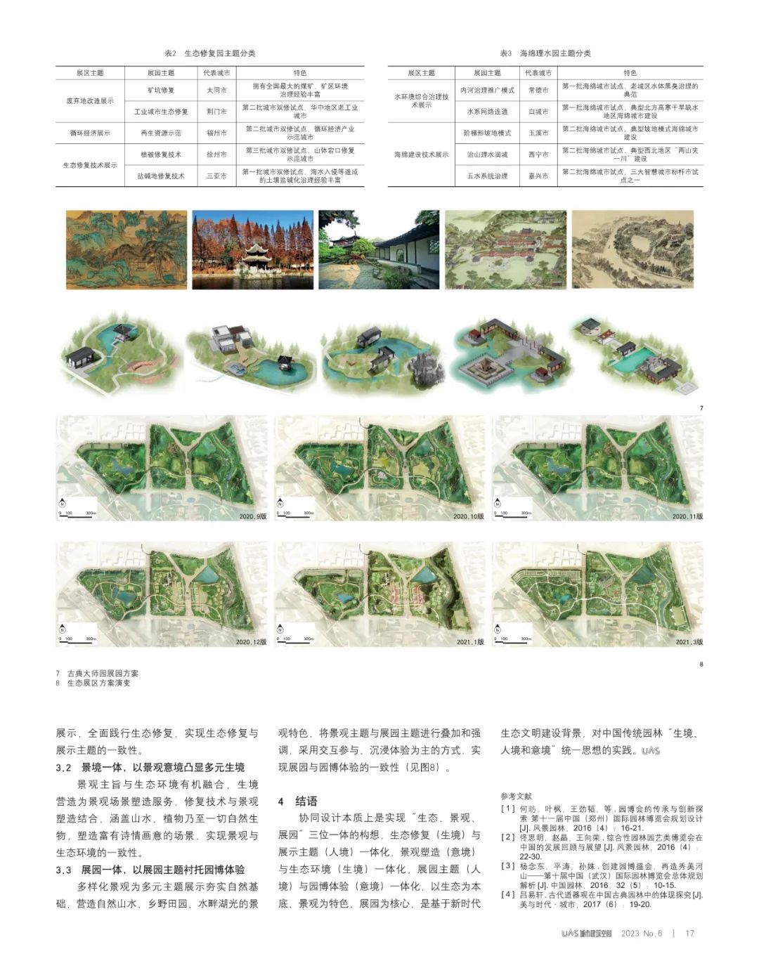 从总体方案与展园设计之间的关联出发,总结往届中国国际园林博览会与展园的关系特征,提出顺应生态文明建设理念,承袭我国传统“道器不二”思想,统筹竖向、水系、海绵、植物、市政、交通等专项并进行协同建设,遵循将景观要素与生态要素有机融合的全新设计思路。