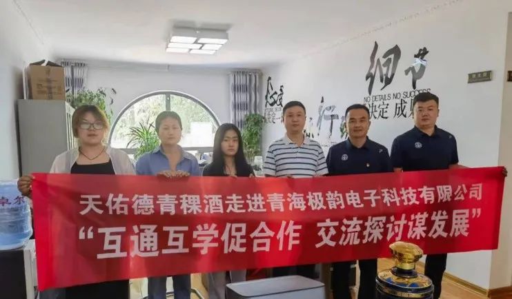 2023年8月1日上午,天佑德青稞酒公司营销中心社会关系运营项目组组长蒋柏山携公司西宁大区团购经销商胡路伟等一行前往青海极韵电子科技有限公司,以“互学互通促党建,交流探讨谋发展”为主题开展党建交流活动。