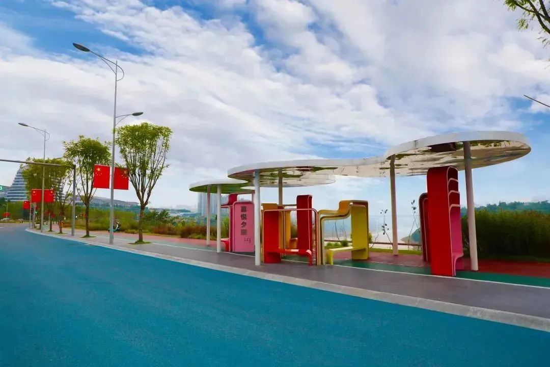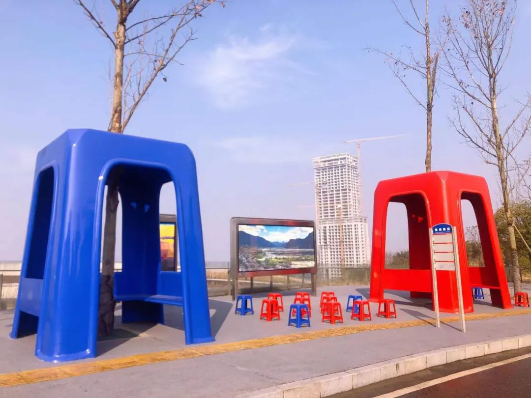 悦城路公交车站《如歌的日子》,以生活中常见的板凳为元素,色彩绚丽,同时与等车的居民朋友有着高度的互动性,引来大家纷纷打卡晒照。
