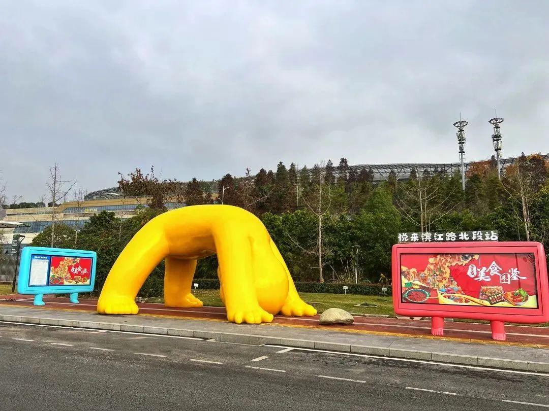 国博中心北站穿鞋的艺术公交车站《等待的风景》,以人的双脚造型作为承载公交车站的主体,独具艺术气息的造型为居民增添了更多等待时间中的小乐趣。