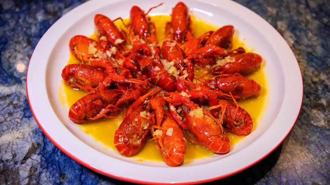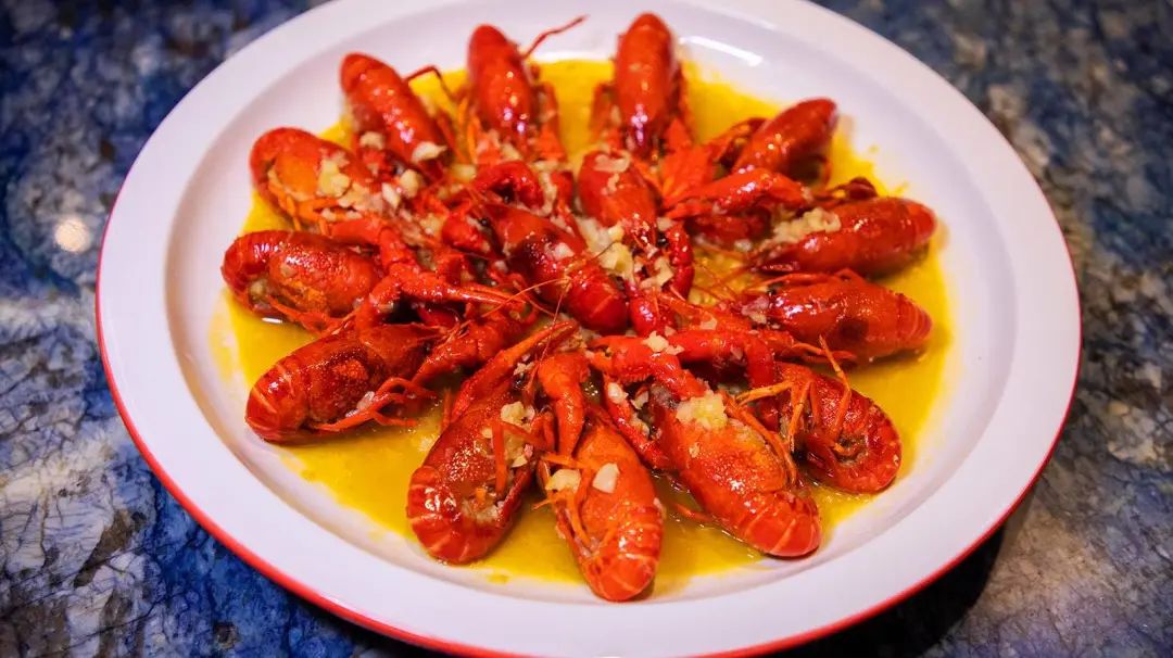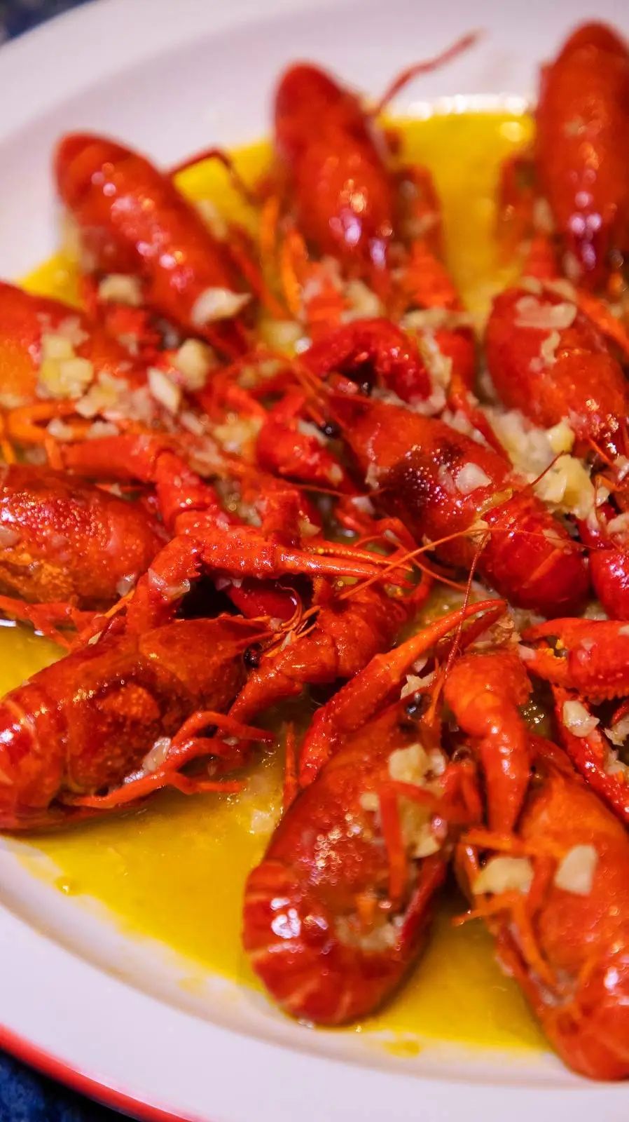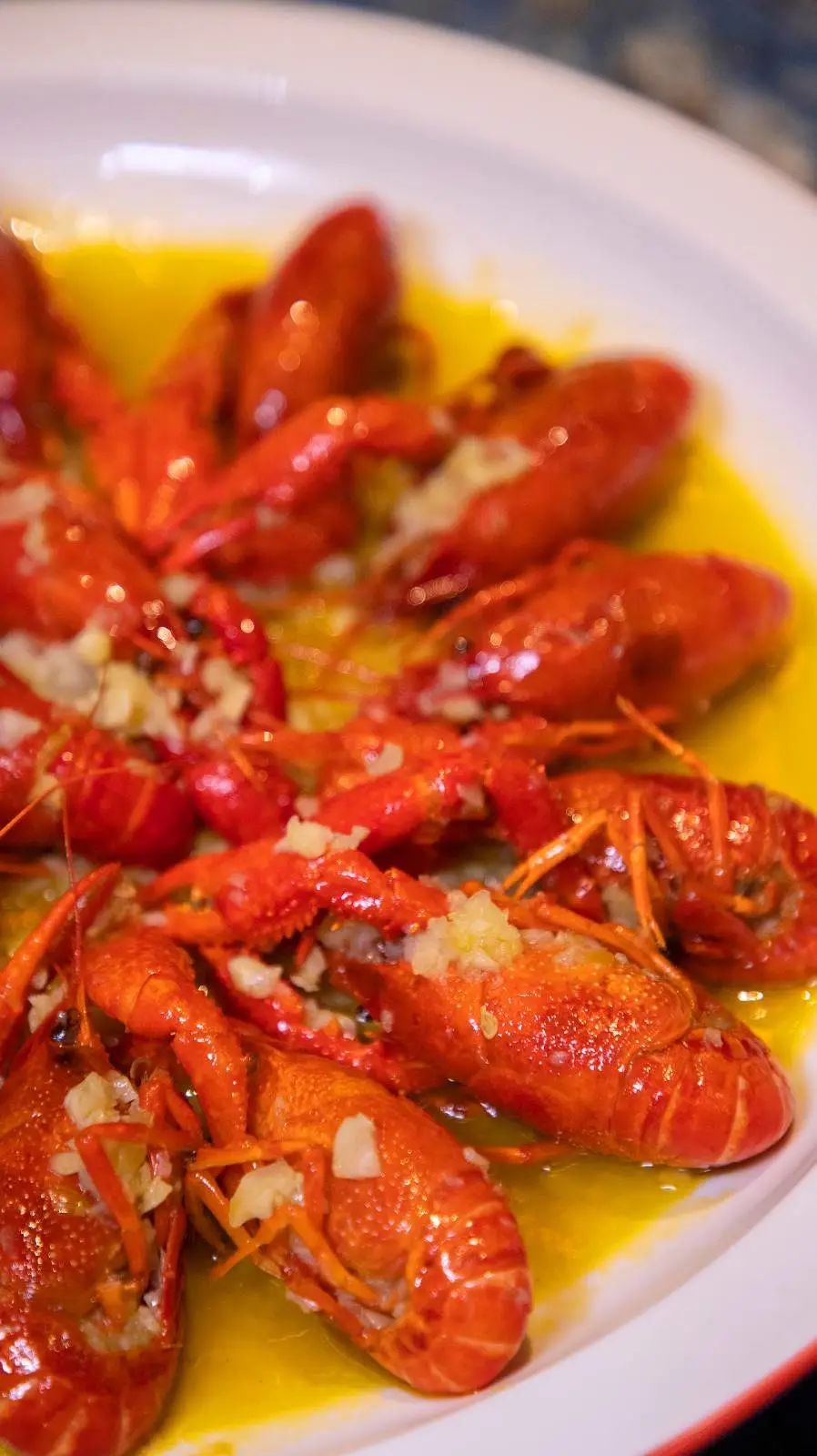 蒜蓉小龙虾外表金黄,虾肉还泛着油光,肥厚又多汁!再蘸一下蒜蓉,一口下去,鲜香诱人~味蕾与视觉的双重诱惑,好吃到舔手!