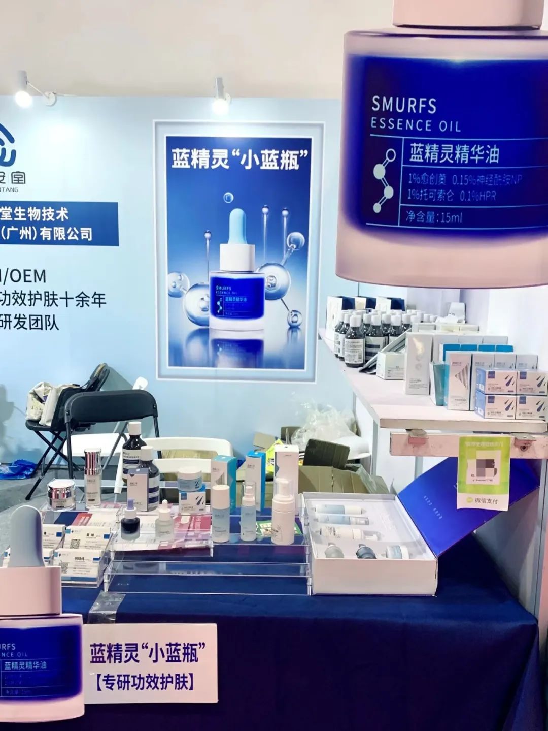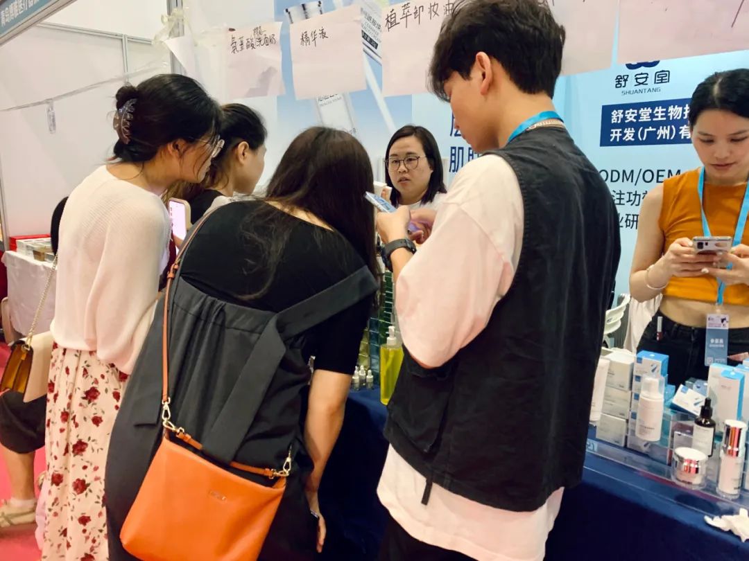 展位映入眼帘的清新蓝色,令人耳目一新,精美而独特的外观,吸引人们驻足。前来咨询的访客新奇地试用我们的产品,温和且舒适的肤感收获了一众好评。