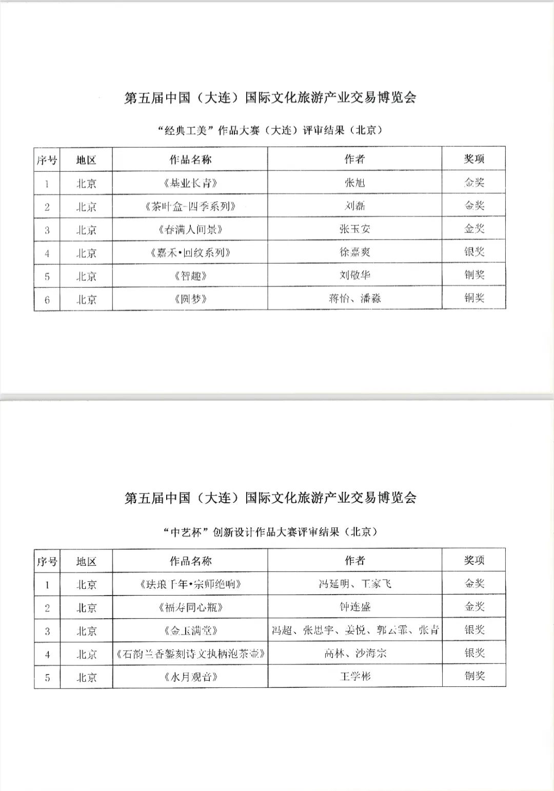 同期,北京展团参加了由中国工艺美术学会主办的“中艺杯”创新设计作品大赛和“经典工美”作品大赛(大连),经专家组评审,取得了5金、3银、3铜的优异成绩。