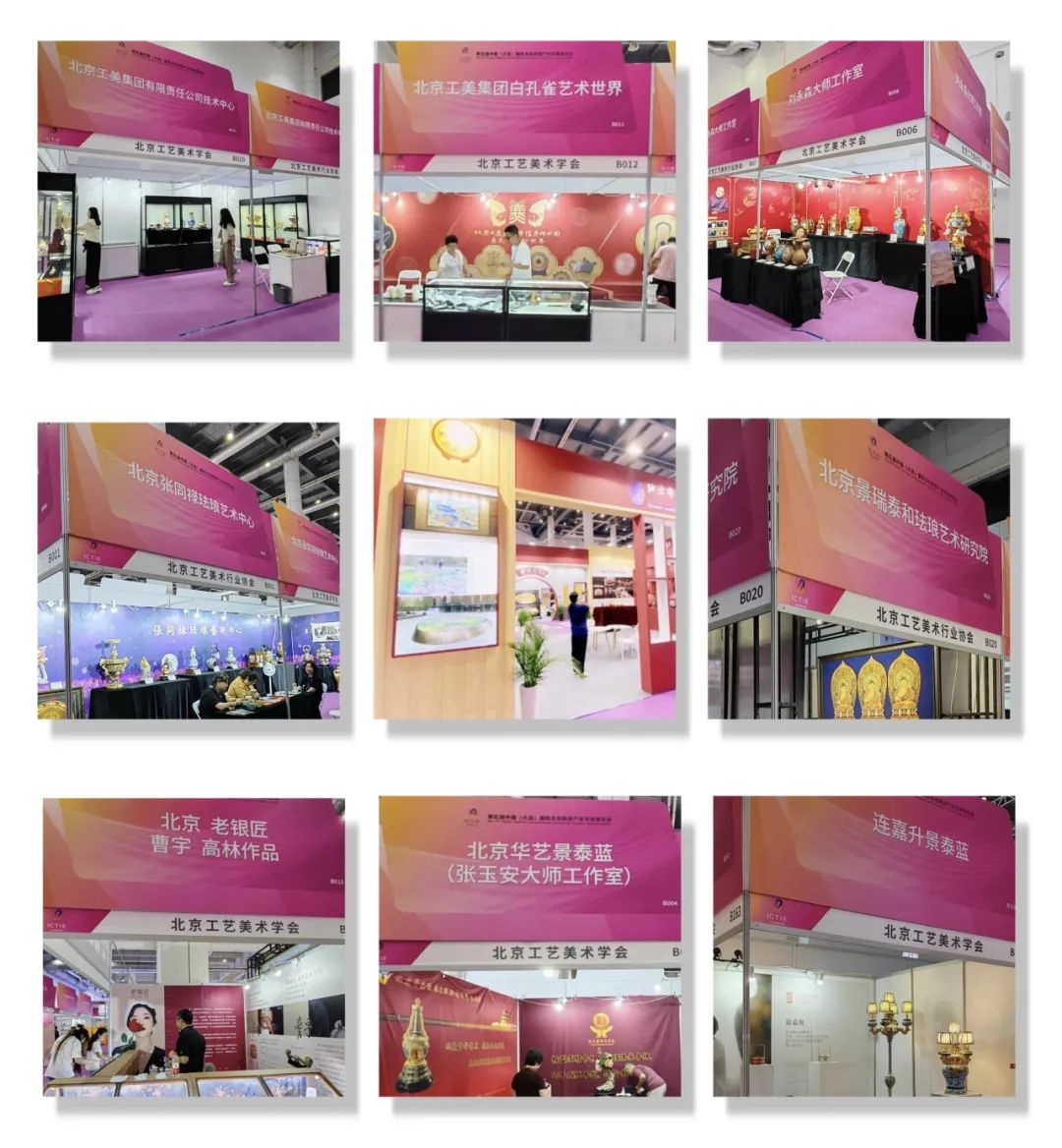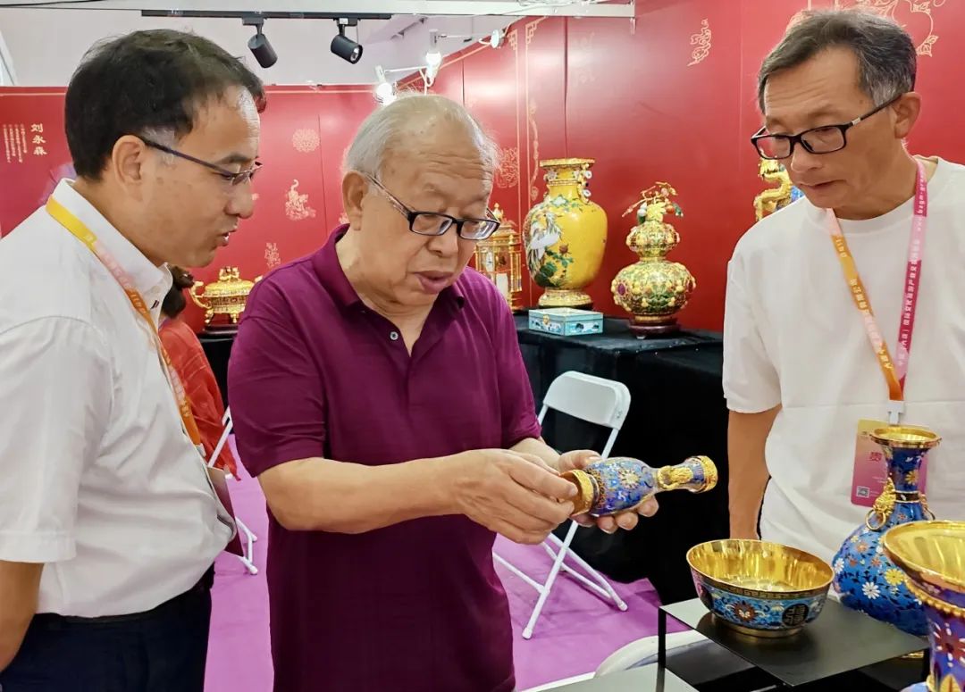 本届博览会以“文旅融合 让城市更美好”为主题,旨在推动文化旅游深度融合,实现文化旅游产业高质量发展。来自全国100多个地区近700个参展商参展。其中北京工艺美术学会组织北京工美集团有限责任公司技术中心、北京工美集团有限责任公司白孔雀艺术世界、北京市珐琅厂有限责任公司、北京张同禄珐琅文化艺术有限公司、北京华艺景泰蓝股份有限公司、北京老银匠饰品有限公司、北京景瑞泰和文化有限公司、北京蓝色土壤文化有限公司、国礼连嘉升景泰蓝艺术品(北京)有限公司等九家行业单位参加了此次盛会,展出以燕京八绝传统技艺为主的精美佳作,彰显了北京工艺美术的深厚底蕴和追求卓越、不断创新的能力,是最为亮眼的展区之一,深受海内外观众的喜爱。