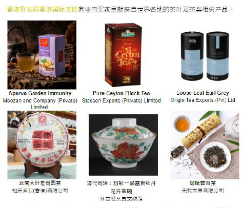 同期举行的香港国际茶展汇聚各式各样的茶类展品,包括各地名茶、茶类相关产品、茶叶包装、饮茶及装茶用具、种茶及制茶技术等。中国内地多个省份的代表会设立展馆,同时,斯里兰卡展团将载誉归来,展出锡兰红茶产品。