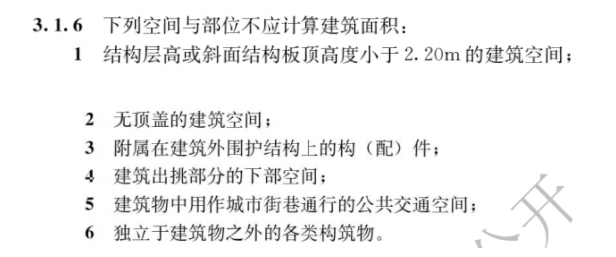 3.1.6第一款:结构层高小于2.20m的建筑空间,列为不应计算建筑面积的范围。