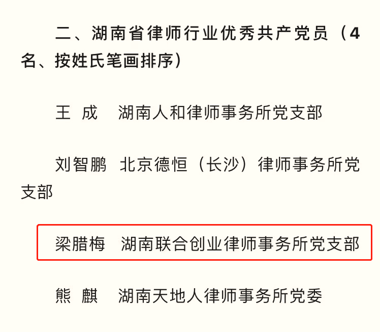 湖南省律师行业优秀共产党员名单