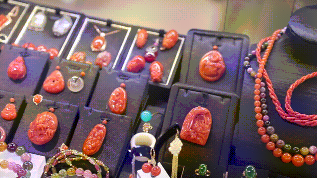 珠宝首饰区也占了不小的比重,翡翠、珍珠 、玛瑙...真是什么都有了;每件饰品都非常的精致,品相、水头看着都非常有质感!确实有种价值连城的感觉!