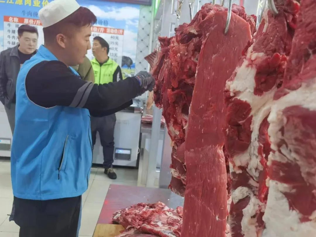 要是不喜欢吃熟食,也有卖鲜牛羊肉的摊位!选好之后,大师傅会帮您精切处理,满意为止!