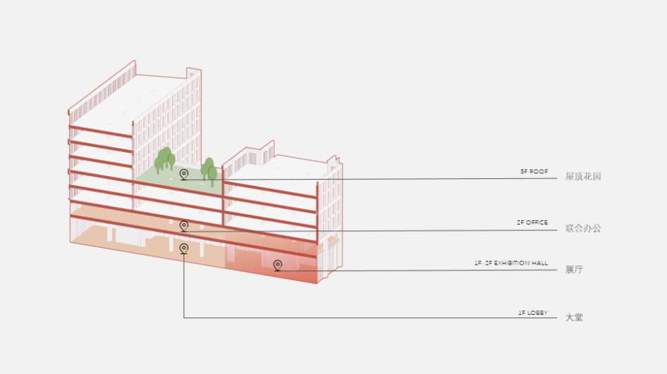 设计师试图在传统CBD的基础上对其进行了「颠覆性设计」,作为办公空间的延伸,利用未使用的天台空间,并将其转变为一个提供令人深思的工作环境的休憩所,在城市的混凝土丛林中。
