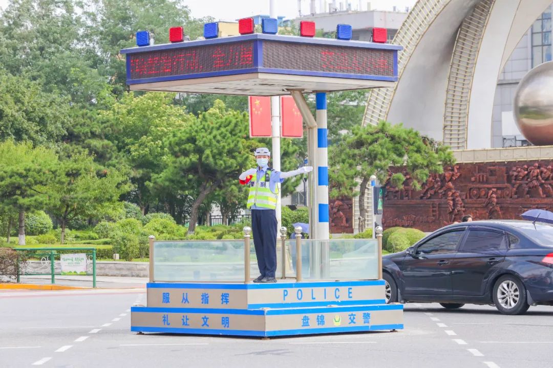 在烈日的炙烤和阵阵车辆尾气的热浪侵袭下,兴隆台交警大队的交警们依旧在路口站得笔直,指挥手势干脆利落,密集的车流在他们的指引下有序快速通行,他们用最高“炎”值“汗”卫我区平安路,成为夏日街头一道亮丽的风景线。