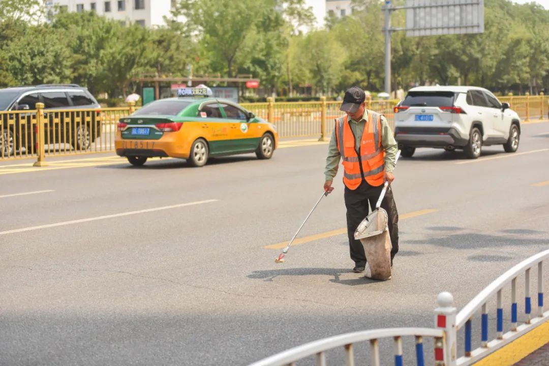 面对扑面而来的热气令人眩晕,然而,在这样的温度中有这样一群人,他们战高温、顶烈日、斗酷暑,毅然坚守在自己的工作岗位上,全力保障城市交通安全。