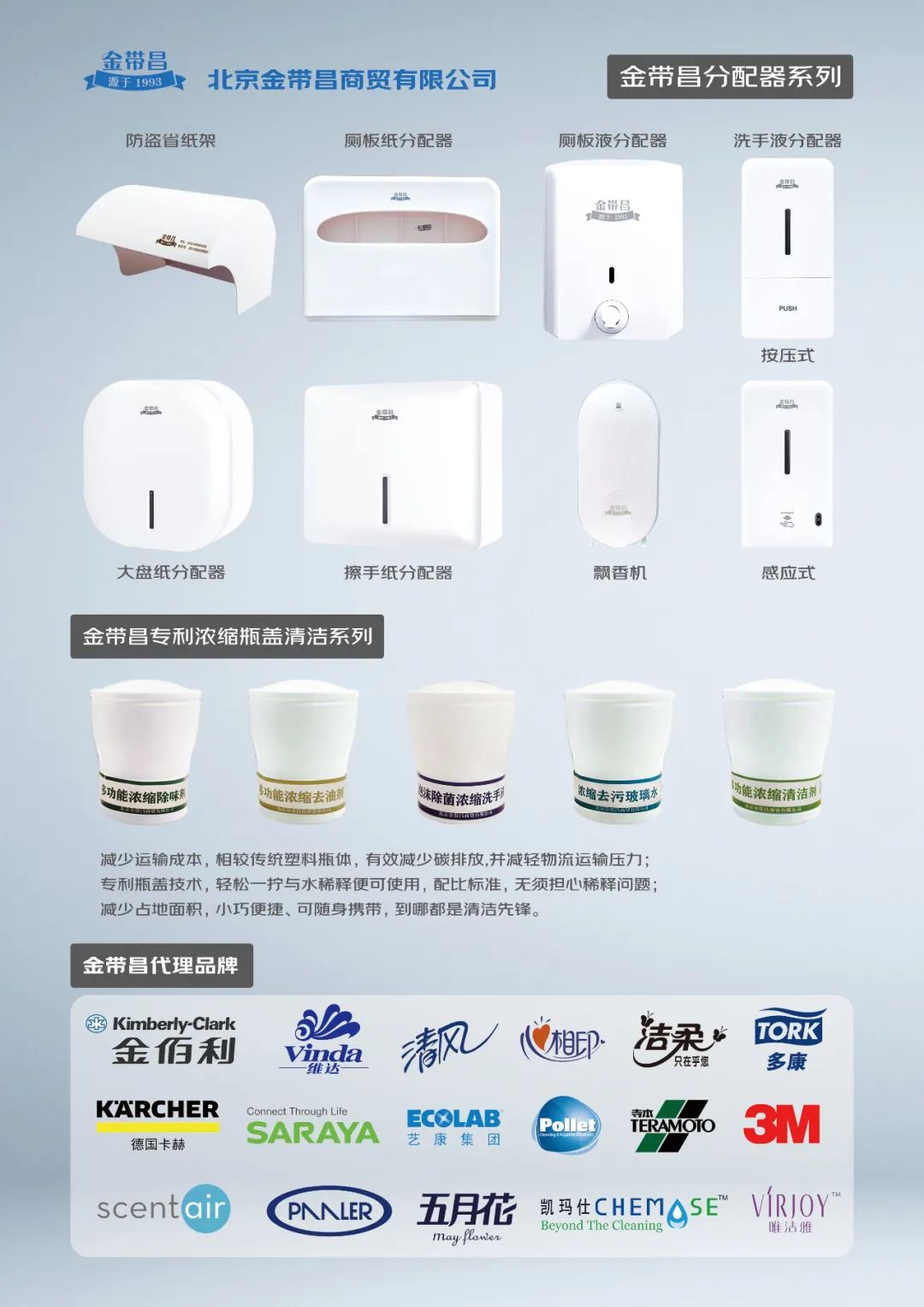 成立于1993年,是一家以研发、生产、销售卫生间系列产品的生产经营型企业。金带昌公司旗下除金旭、金宇、泉通等品牌外,同时代理众多一线品牌,代理品牌包括:金佰利、普莱特、清风、维达、多康、心相印、洁柔、五月花、卡赫、艺康、3M、莎罗雅、凯玛仕、寺本、派勒、唯洁雅、尚雅等。企业经营三十余年至今,得到了众多一线商业地产,高端写字楼、酒店、商场、院校、医院、轨道交通等业态的一致好评。► 德倍洗 保洁管理类 |