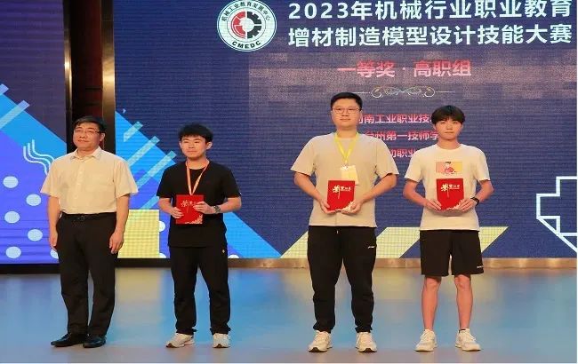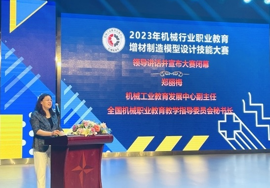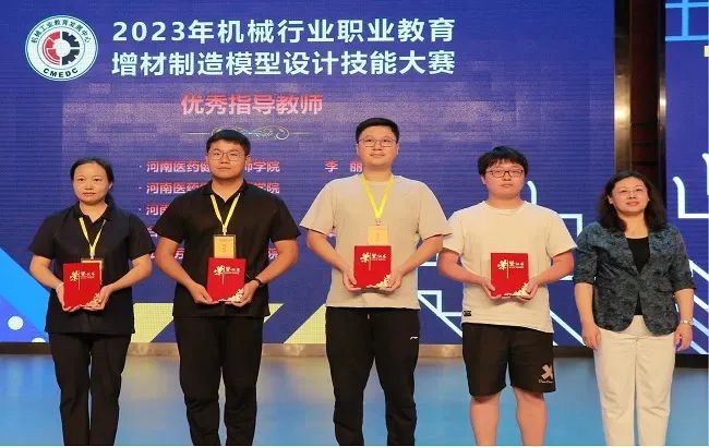 郑丽梅副主任为优秀指导教师颁奖并讲话。她指出:本次比赛创新了赛证融通的比赛形式,赛题的设计与增材制造产业技术紧密结合,同时与增材制造模型设计职业技能等级证书考核内容密切衔接,旨在通过竞赛的形式提升参赛选手职业技能水平,培养创新思维和解决实际问题的能力,比赛采取教师与学生共同组队参赛的模式,也是密切师生联系、体现教学相长的一次有益的探索和实践。同时,希望参赛院校和指导教师,能够将本次备赛和比赛的指导过程,融入到今后的教学改革提升中,将竞赛资源转化为教学资源,发挥行业赛事“促学、促教、促改”的作用,培养更多增材制造领域技术技能人才。希望参与和支持本次大赛的各企业、院校,能够进一步深化合作,助力增材制造领域的技术攻关、产业升级,推动制造业高质量创新发展。