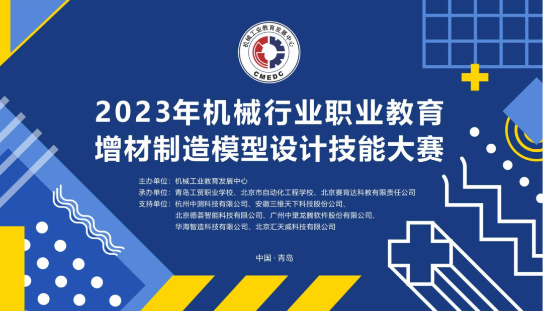 7月27日-28日,2023年机械行业职业教育增材制造模型设计技能大赛决赛在山东青岛顺利举行。本次大赛由机械工业教育发展中心主办,青岛工贸职业学校、北京市自动化工程学校、北京赛育达科教有限责任公司承办,杭州中测科技有限公司、安徽三维天下科技股份有限公司、北京德荟智能科技有限公司、广州中望龙腾股份有限公司、华海智造科技有限公司、北京汇天威科技有限公司提供技术和平台支持。