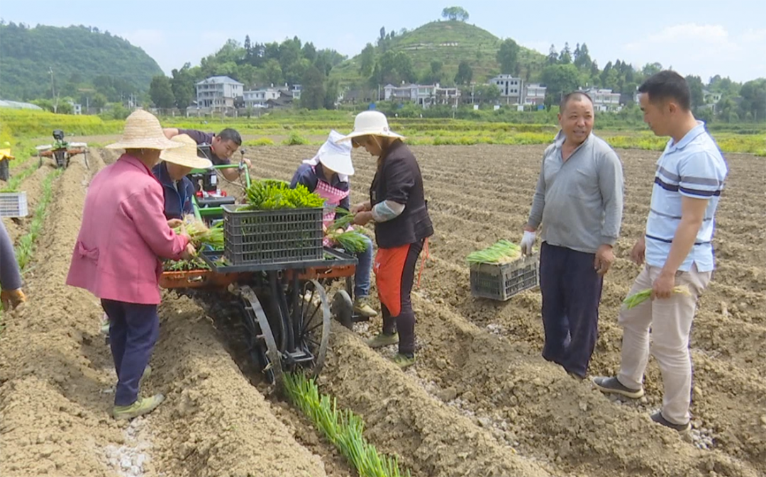 在马蹄镇长远村大葱种植基地,当地村民正在利用机械栽种大葱。为加快大葱种植,长远村种养殖专业合作社投入2万多元,购买了省时省力,方便快捷的大葱种植机械用于种植大葱。
