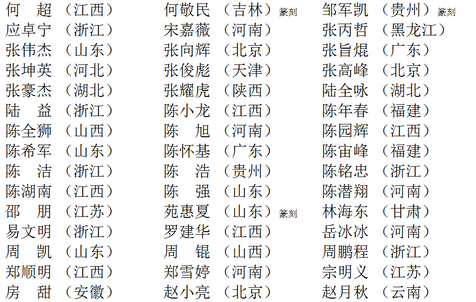 拟获奖、入展名单公示